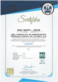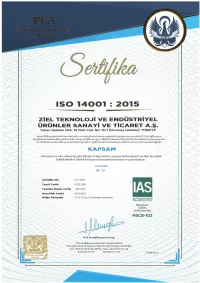 ZIEL® üretimlerinin kalite kontrolünü sağlamak adına ISO 9001:2015 Kalite Yönetim Sistemi belgesine, İş Sağlığı ve Güvenliği yönetim sistemi olan ISO 45001:2018 belgesine ve ISO 14001:2015 Çevre Yönetim Sistemi belgesine sahiptir.